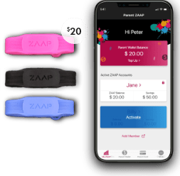 Teach your kids healthy spending habits and financial responsibility with ZAAP. Perfect for tweens and teens in having access to small amounts of spending money as they need it. Choose between a savings card or wearable ZAAP band, ensuring your child has access to their money on the fly. Easily monitor their spending and help support them achieve their savings goals today!